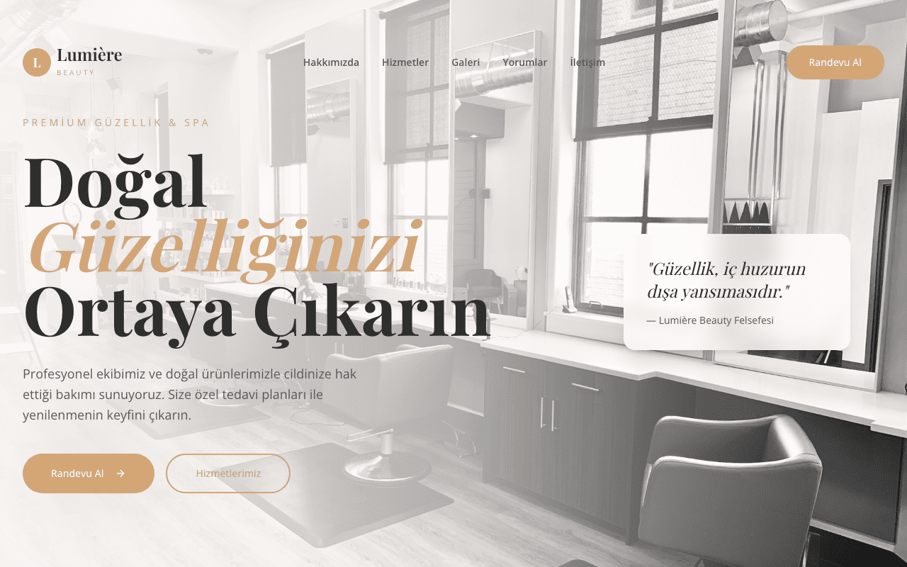Biz sadece dijital bir 'kartvizit' yapıp bırakmıyoruz. İşletmenizin prestijini yansıtan, Google'da bulunabilirliğinizi artıran ve ziyaretçilerinize anında güven vererek onları müşterilerinize dönüştüren profesyonel bir dijital altyapı inşa ediyoruz. Önceliğimiz, markanızın sektörünüzde en güçlü ve kurumsal şekilde temsil edilmesini sağlamaktır.